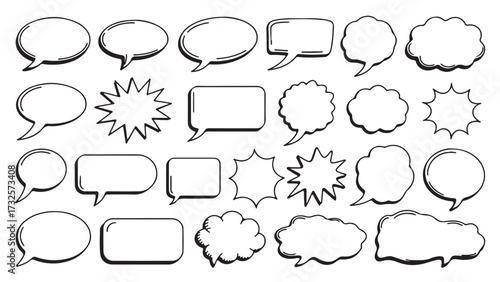 © M Bilal, Obraz premium Collection of hand-drawn speech bubbles vector illustration of diverse shapes for chat and communication isolated on white background