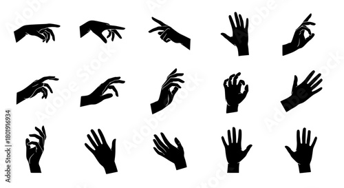 © Muhammad, Fototapeta premium Collection of hand silhouettes in various poses and gestures black on transparent background