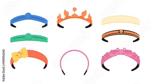 © Erin, Naklejka premium Collection of headband with different shapes and color vector illustration isolated on white background