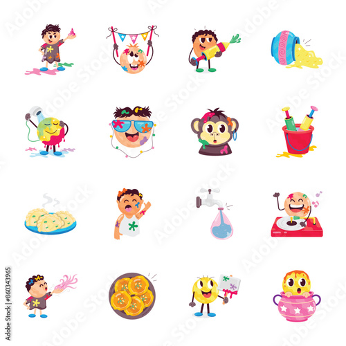 © Vectors Market, Naklejka premium Collection of Holi Festival Flat Stickers