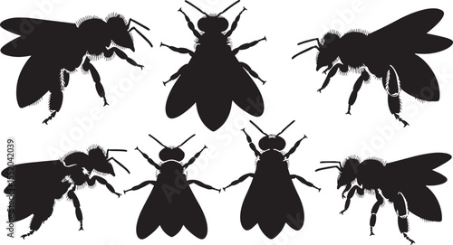 Naklejka premium Collection of Honeybee Silhouettes Vector Illustrations for Design Projects