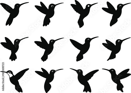 Obraz premium Collection of Hummingbird Silhouettes Vector Design