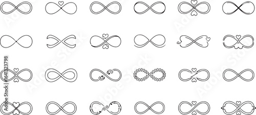 Fototapeta premium Collection of intricately designed infinity symbols in black and white
