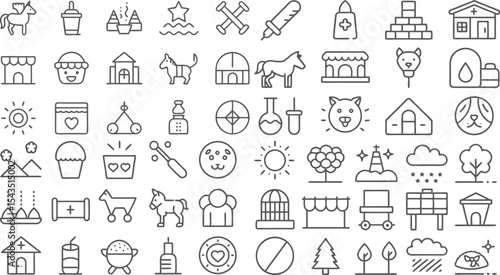 Fototapeta premium Collection of Line Icons Featuring Animals, Houses, Food, Nature, and Various...