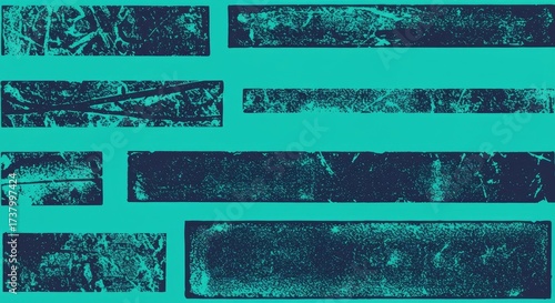 © AbdulBasit, Fototapeta premium Collection of linocut rectangle textures with ink roller effects on a bright neon turquoise background. Vintage letterpress overlays with rough edges for urban and street art designs.