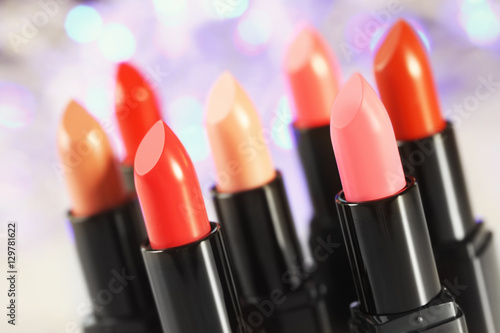 © Africa Studio, Obraz premium Collection of lipsticks on blurred lights background