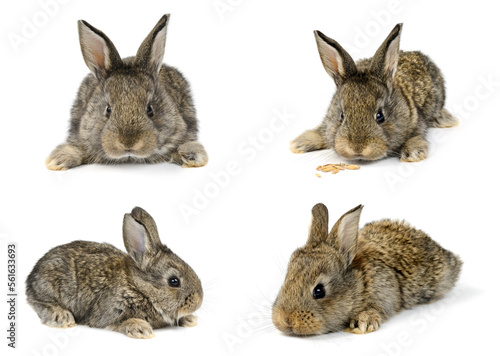 Fototapeta premium Collection of little rabbits from different angles isolated on white