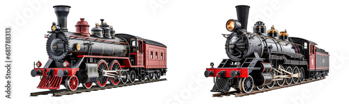 Naklejka premium Collection of locomotives on a white or transparent background generative ai