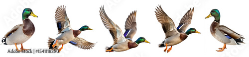 Obraz premium Collection of Mallard bird fly full body isolate on transparent background