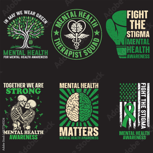 Fototapeta premium Collection of Mental Health T-shirt Vector, Positive Quotes Shirt, Green...