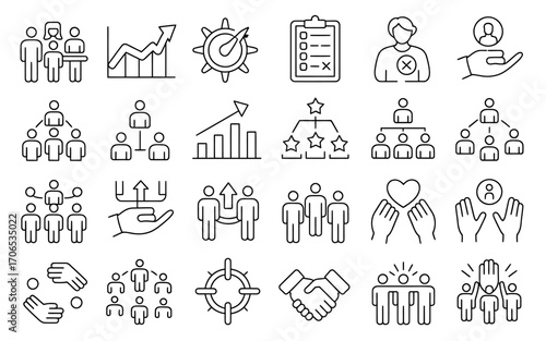 © NAFISA, Naklejka premium Collection of 30 minimalist black and white line art icons for digital use