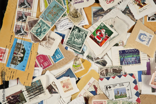 © flariv, Obraz premium Collection of mixed postage used stamps