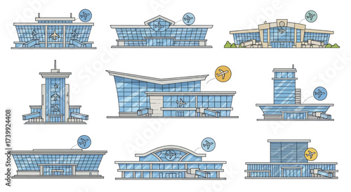 Obraz premium Collection of Modern Airport Terminal Building Illustrations 1.