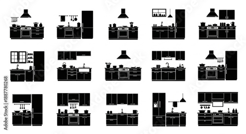© Rio, Obraz premium Collection of Modern Kitchen Silhouettes.