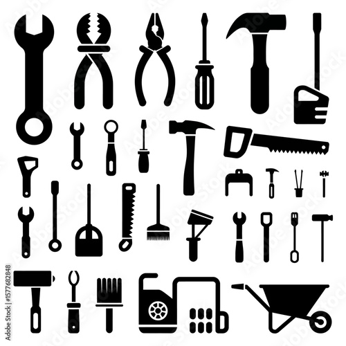 © NUSRAT, Obraz premium Collection of monochrome tool icons for graphic design and web applications