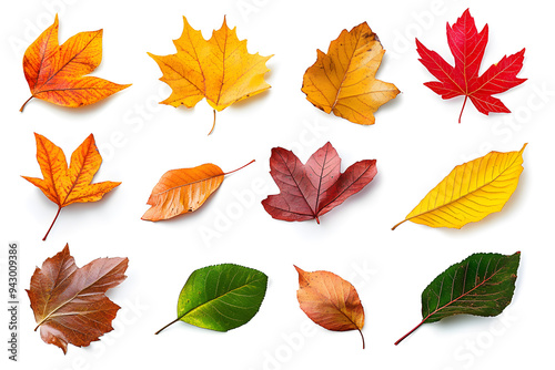 Obraz premium Collection of multicolored fallen autumn leaves isolated on white background