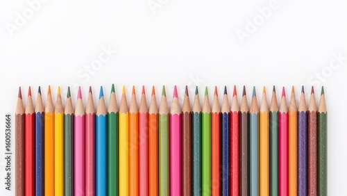 © CreativeBro, Obraz premium Collection of multicolored wooden pencils laid out on white