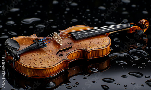 © Sergei, Fototapeta premium Collection of musical instruments, violin. ideal for music education sites and online music lessons. Generate image using AI
