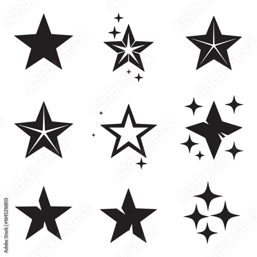 Fototapeta premium Collection of nine black star vector illustrations for design elements and decorative purposes