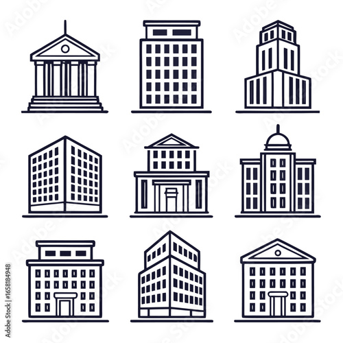 © Shanta123, Fototapeta premium Collection of nine building outline icons architecture