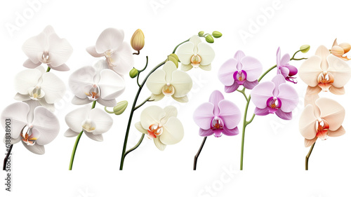 Obraz premium collection of orchids flowers isolated on a transparent background, generative ai