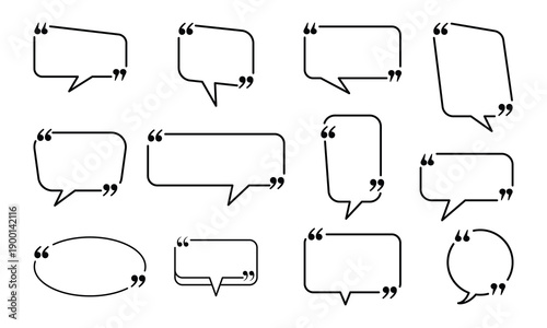 © Charles stockio, Obraz premium Collection of Outline Speech Bubbles with Quotation Marks. Quote box frame. Texting quote boxes and blank templates for text info. isolated on white background.
