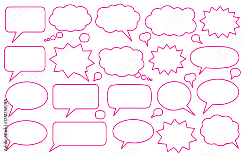 © Mst Rozina Pervin, Obraz premium Collection of Pink Outline Speech and Thought Bubbles on White Background speech bubble