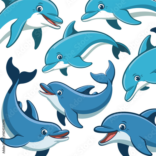 Obraz premium Collection of playful cartoon dolphins in various poses