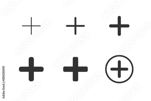 © Passatic, Fototapeta premium Collection of plus symbols in various styles and thicknesses on a white background