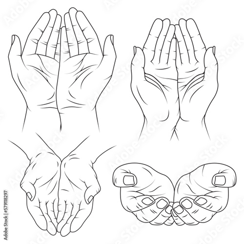 © Ancala, Obraz premium Collection of praying hands drawing outline