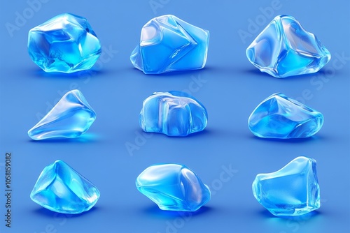 Naklejka premium Collection of realistic blue crystals against a vibrant background showing...