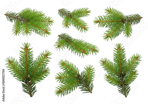 © SAIKAT, Naklejka premium Collection of realistic evergreen tree branches against a black background