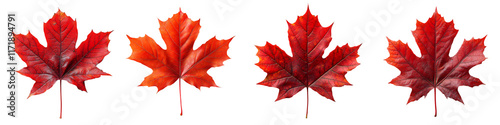 © Graphics Fusion, Naklejka premium Collection of Red Maple Leaves - Autumn Nature Isolated on White Background