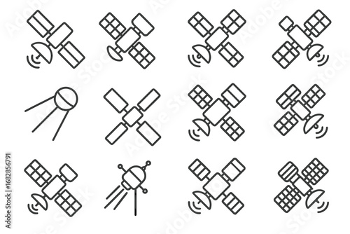 Obraz premium Collection of satellite icons displaying various designs and configurations