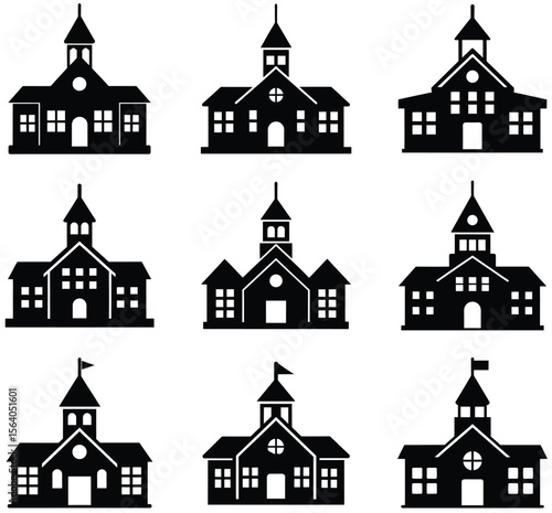 Fototapeta premium Collection of School Buildings Silhouettes Depicting Educational Architecture...