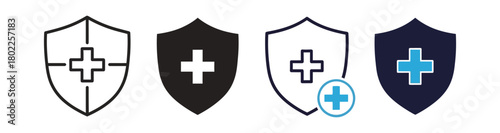 Fototapeta premium Collection of Shield with Medical Cross Sign, Flat Design Isolated on White...
