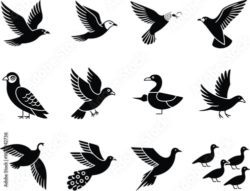 Obraz premium Collection of silhouette bird illustrations in various flying and perched poses