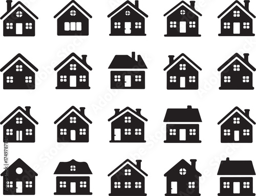 Fototapeta premium Collection of silhouette house vector icons featuring various architectural...