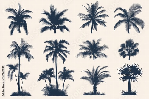 Fototapeta premium Collection of Silhouette Palm Trees