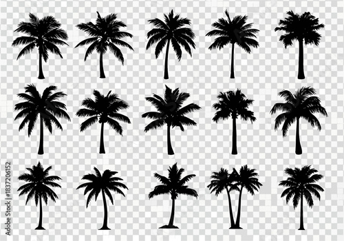 © opik, Fototapeta premium Collection of Silhouette Palm Trees Various Types and Styles Realistic Vector Illustrations for Tropical Designs