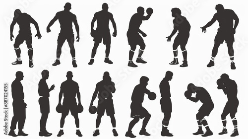 Naklejka premium Collection of silhouetted boxers showcasing different dynamic poses and...