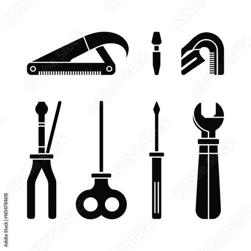Obraz premium Collection of silhouetted hand tools for repair and maintenance