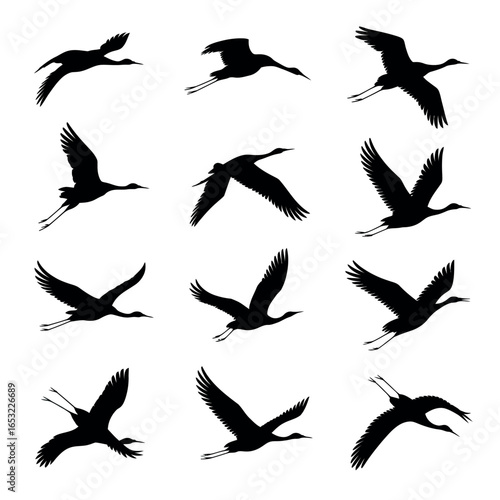 © SnapArtStock, Fototapeta premium Collection of silhouettes of cranes in flight