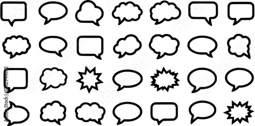 © HADI INCREDIBLE, Fototapeta premium Collection of simple black line speech bubbles and chat icons.