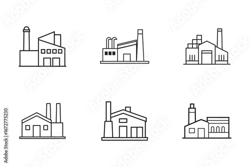 Obraz premium Collection of Simple Factory Outline Icons Representing Industrial Production and Manufacturing Processes for Digital Design Projects