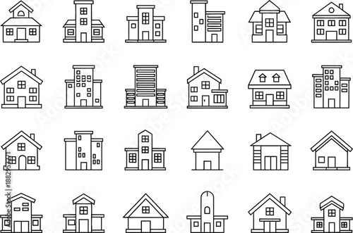 © Aktaruzzaman, Fototapeta premium Collection of 20 simple house and building line drawings