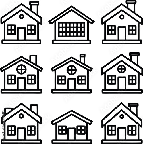 Fototapeta premium Collection of simple house outlines silhouette isolated on white background