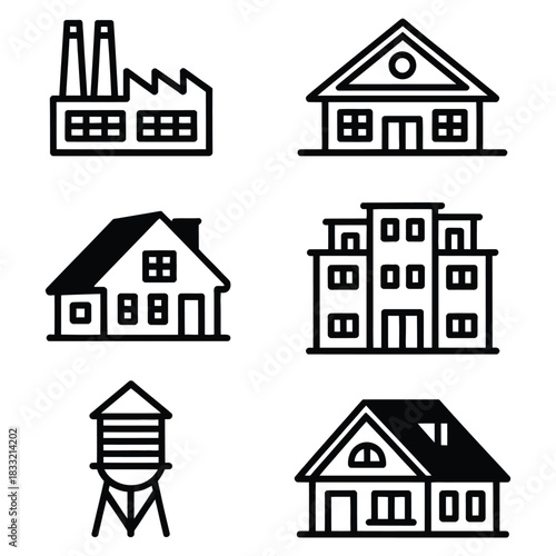 Fototapeta premium Collection of simple line art icons representing buildings and structures