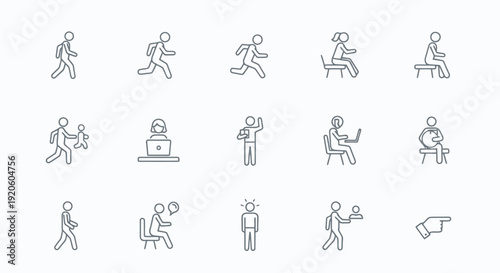 © Yadi, Fototapeta premium Collection of simple line art icons representing human activities and emotions.