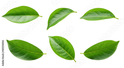 © enamulhaque200, Fototapeta premium Collection of six green leaves arranged on a plain field isolated on transparent background
